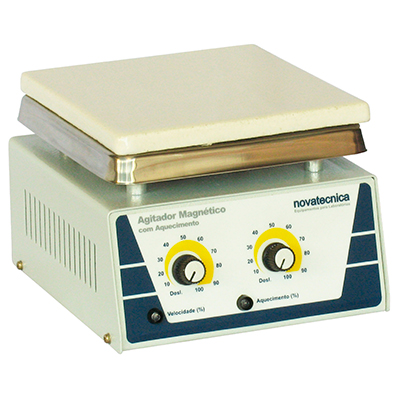 - AGITADOR MAGNÉTICO COM AQUECIMENTO COM PLATAFORMA EM PIROCERÂMICA DE 175 X 175mm;
